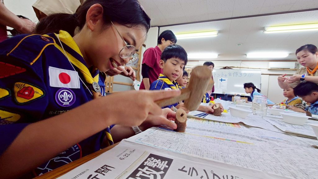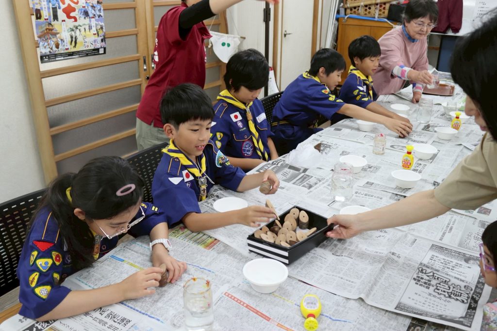 7/13は、大分第5団の団委員さんをお招きして、カブ隊・ビーバー隊はトントゥ作りを体験しました!