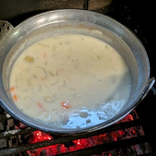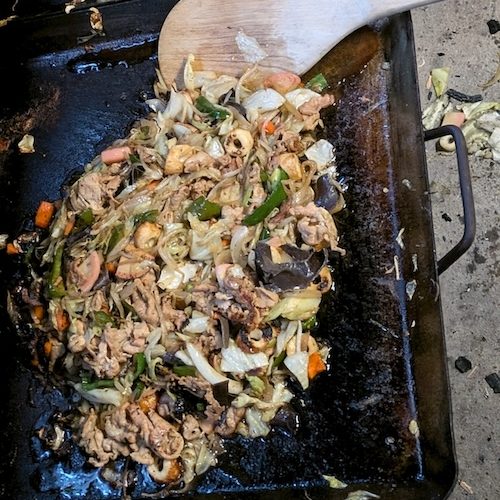 野外炊爨は、組別で野菜炒めとクリームシチュー!
