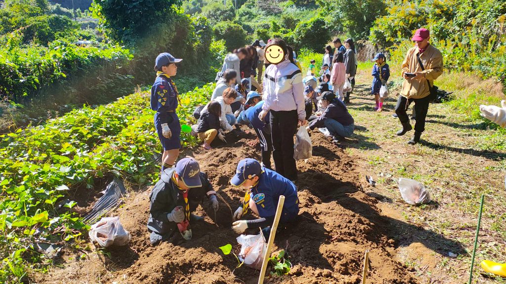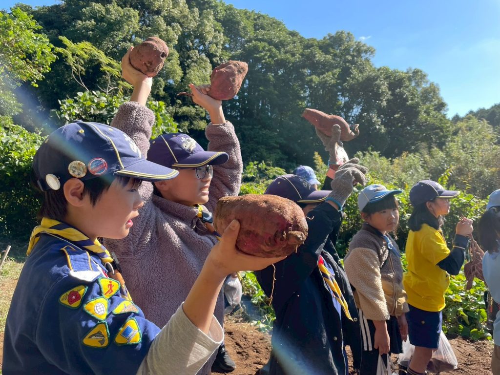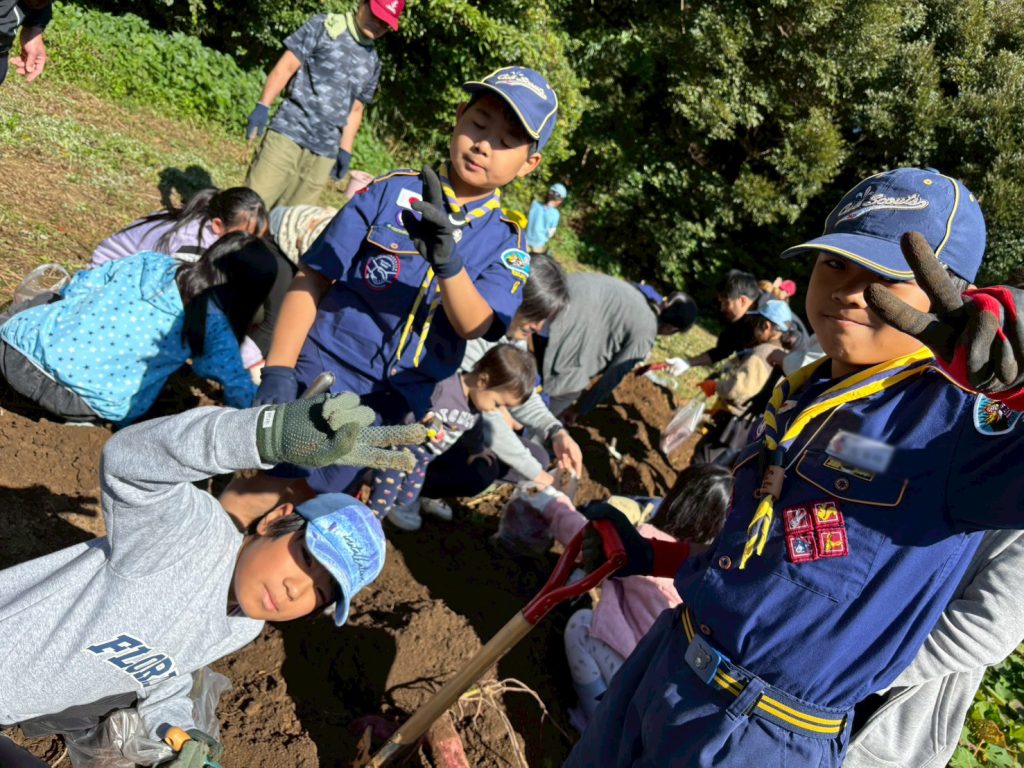 団行事 芋堀り大会!! Tweet Pocket 11/3は団で芋ほり大会!!春すぎにみんなで植えたサツマイモの苗。すくすくと育って収穫の時期です!!カブさんとビーバーさん達は芋ほり組!体験参加のご家族も多く参加されました。ちなみにボーイ隊は残って焼き芋や豚汁の調理の準備!!大小さまざまなサツマイモが大量に収穫でき、皆からは大満足の笑みがこぼれていました。