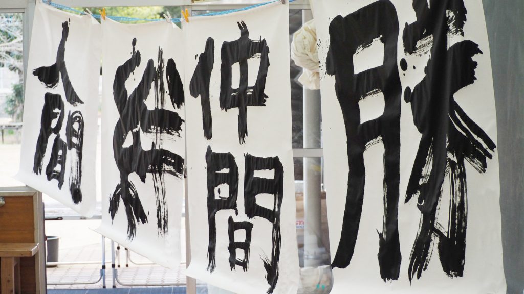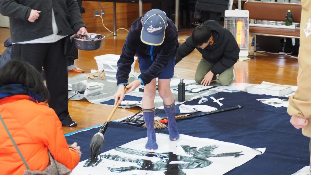 また、ひさびさの書初めも用意され、それぞれの気持ちを大きく書いていました。