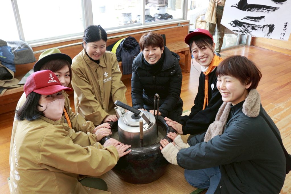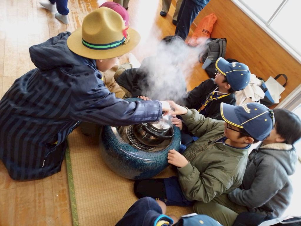 会場にはご厚意で火鉢が置かれ、スカウトだけでなく保護者の皆さんも温まりながらの井戸端会議♪