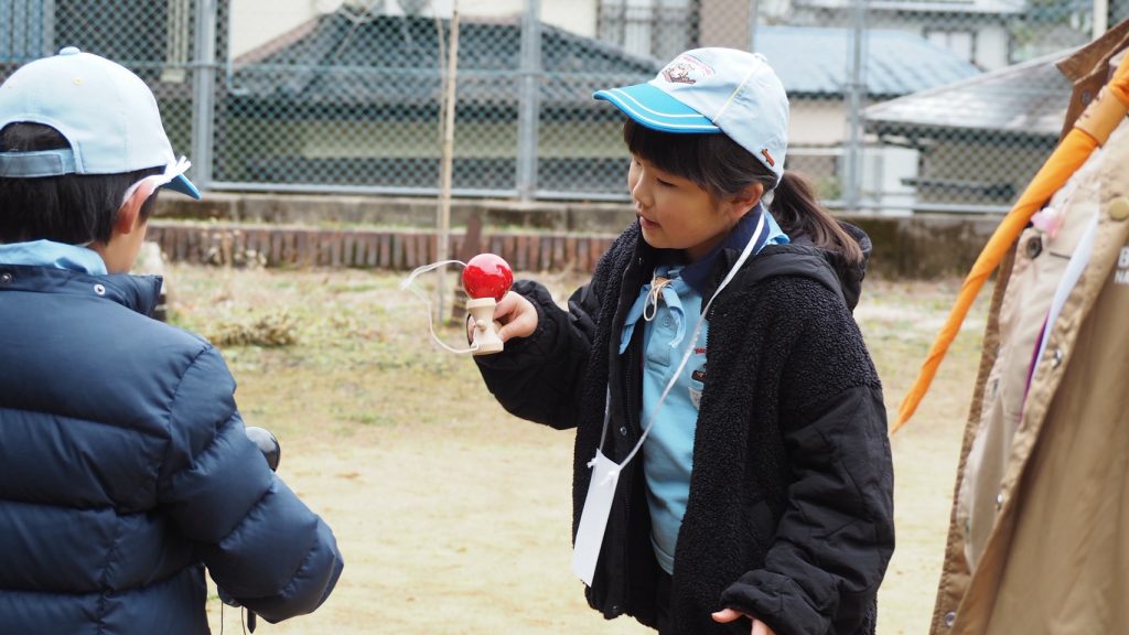 羽子板、竹馬、竹とんぼ、缶ぽっくり、コマ、皆でどんどんクリアしていきます。