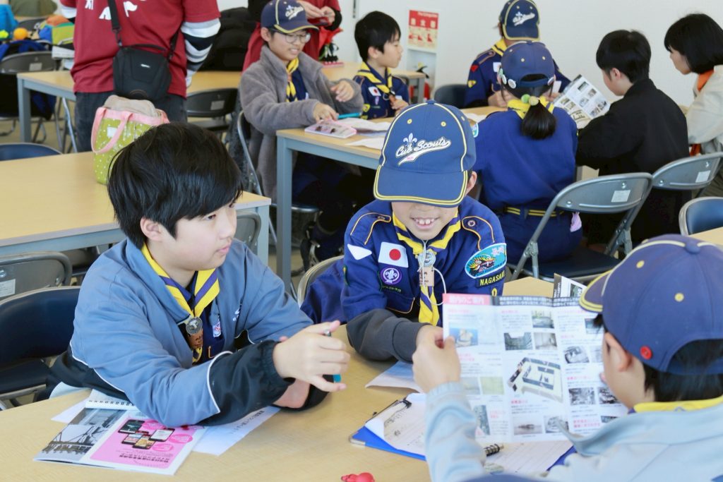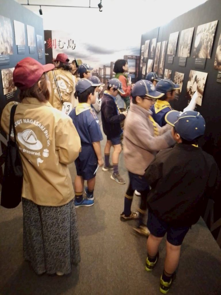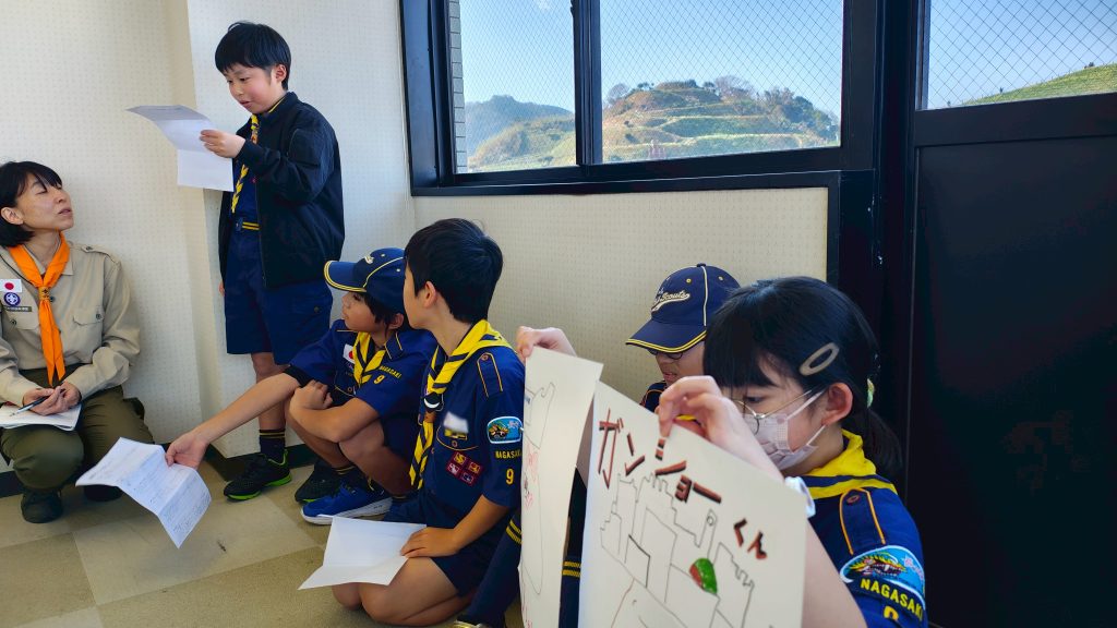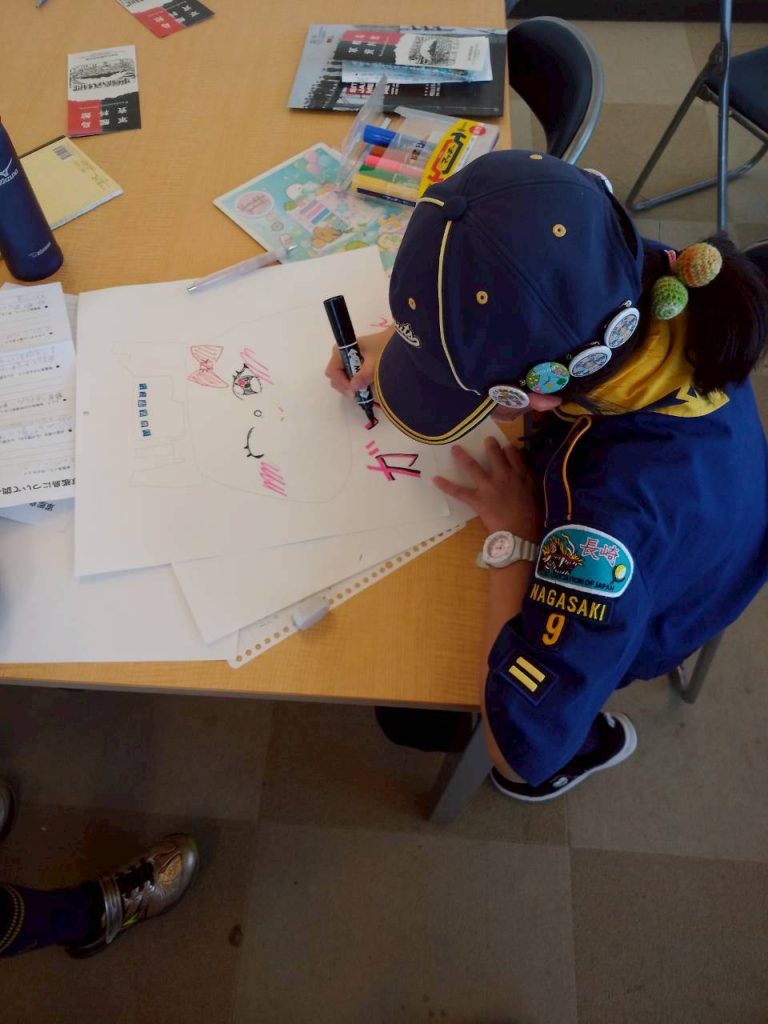 カブ隊 端島を知ろう Tweet Pocket カブ隊は、軍艦島と呼ばれる端島について調べるために、軍艦島資料館へいきました。晴天に恵まれ、端島がくっきりとした姿を見せる中での開会セレモニー!!スカウト達は思い思いにメモを取りながら、端島の歴史に思いをはせていきます。炭鉱という存在が遠い昔になろうとしている今、スカウト達にはその繁栄と衰退がどのように打ったのでしょうね。調べたあとは内容のまとめタイム!!絵や文字を駆使して、カラフルにわかりやすく発表していきました。